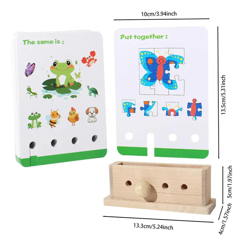 This beautifully crafted wooden learning game invites children to explore patterns, compare colors, and combine shapes β all without pressure, but with plenty of fun.